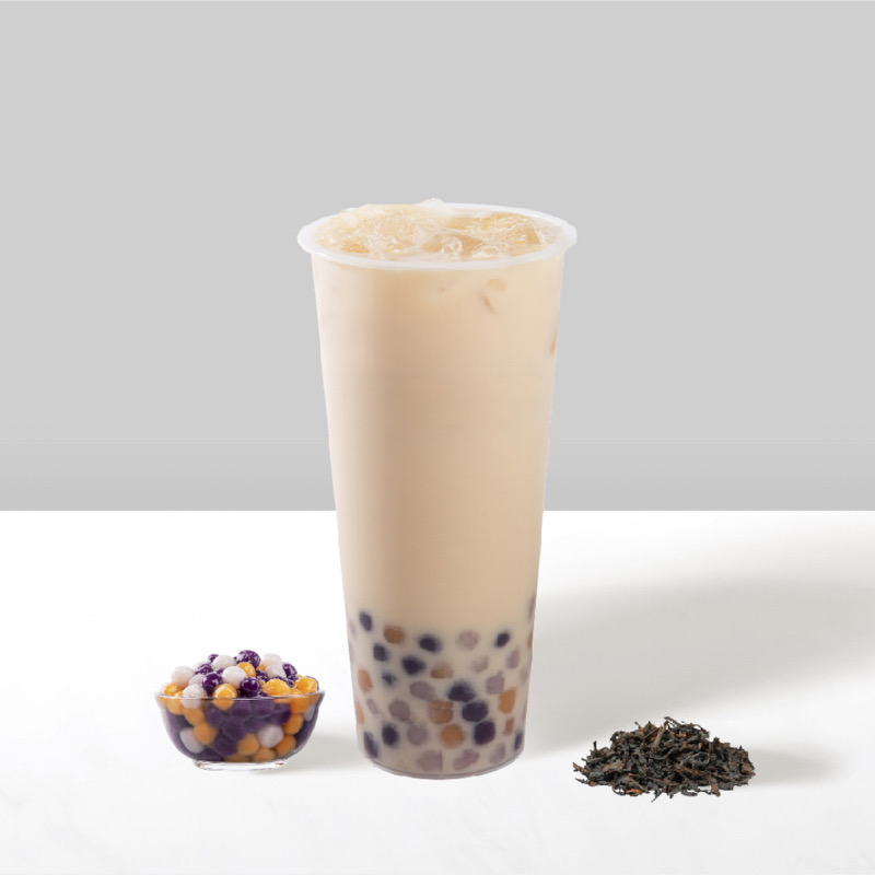 Thé quatre saisons au lait avec pudding nature, perle de tapioca